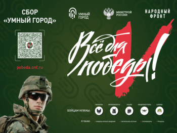 Совместно с Народным Фронтом в рамках проекта «Все для Победы!» Минстрой России реализует акцию Сбор «Умный город». При активном участии субъектов Российской Федерации восстанавливаются и строятся объекты жилищного фонда, социальные объекты, объекты коммунальной и транспортной инфраструктуры.