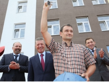 Дмитрий Козак, Михаил Мень и Евгений Куйвашев вручили ключи от квартиры миллионному переселенцу из ветхого жилья